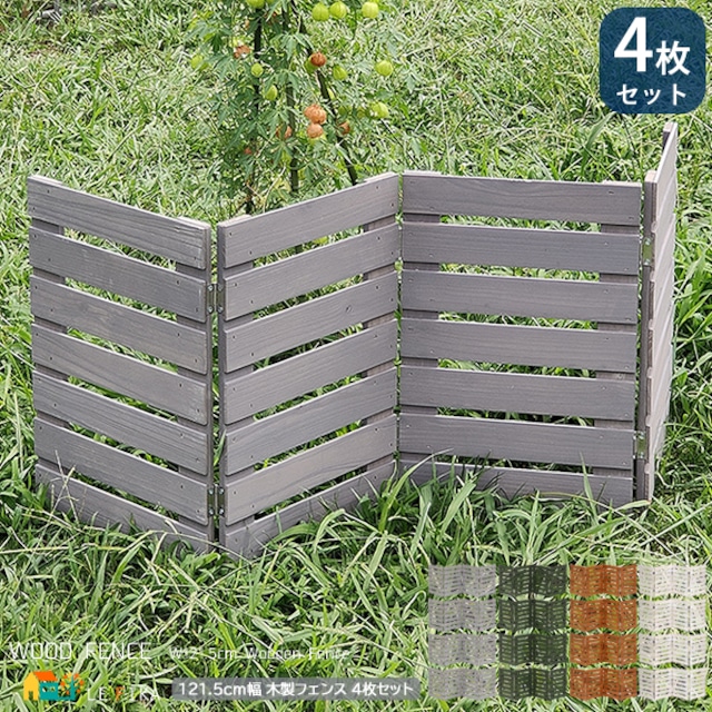 木製フェンス 4枚セット 121.5cm幅 ボーダーフェンス ライトブラウン ホワイト ダークグリーン グレー ウッドミニフェンス ガーデンフェンス 折り畳み式フェンス 幅121.5cm 奥行1.6cm 高さ44cm おすすめ おしゃれ 北欧 モダン スタイリッシュ 天然木 フェンス 花壇のフェンス