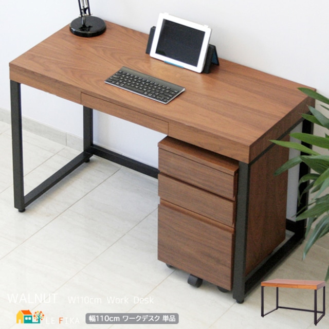 引き出し収納付きデスク 110cm幅 ブラウン 茶色 ワークデスク デスク スチールフレーム 木製 パソコンデスク 作業台 作業デスク 作業机 おすすめ おしゃれ 北欧 モダン スタイリッシュ 収納付きデスク 幅110cm 奥行50cm 高さ72.5cm リモートワーク テレワーク 在宅ワーク