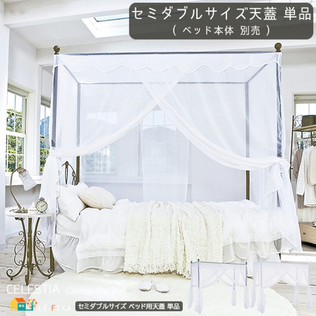 セミダブルサイズ用天蓋 1台 単品 123cm幅 ホワイト ゴールド 白 ベッド用天蓋 セミダブルサイズ天蓋 天蓋単品 設置時サイズ幅123cm 奥行206cm 高さ207cm おすすめ おしゃれ 北欧 モダン スタイリッシュ アンティーク調 姫系 セミダブルベッド用天蓋 春 夏 秋 冬 天蓋