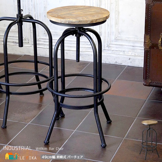 バーチェア 1脚 単品 49cm幅 ブラック 昇降チェア 昇降スツール 円形 丸形チェア 円型 丸型チェア おすすめ おしゃれ 北欧 天然木 パイン材 スチールフレーム 足置き付き 昇降式 高さ調整可能 幅49cm 奥行49cm 最大高さ79cm 背もたれ無し 肘掛け無し 椅子 チェア スツール