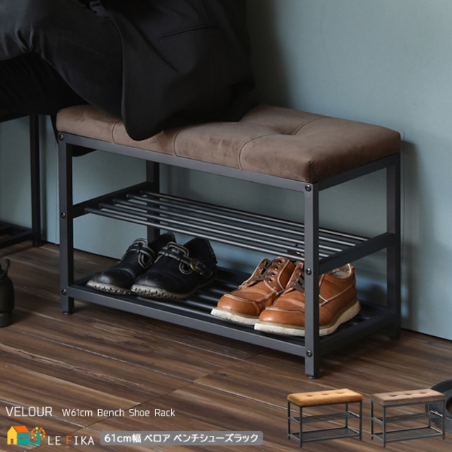 玄関ベンチ シューズラック 61cm幅 ダークブラウン ライトブラウン 靴収納ラック 玄関収納 玄関の椅子 幅61cm 奥行30.5cm 高さ42.5cm おすすめ おしゃれ 北欧 モダン スタイリッシュ ベロア シューズ収納棚 玄関のベンチ 収納ラック 靴ラック ベンチ 椅子 背もたれ無しチェア