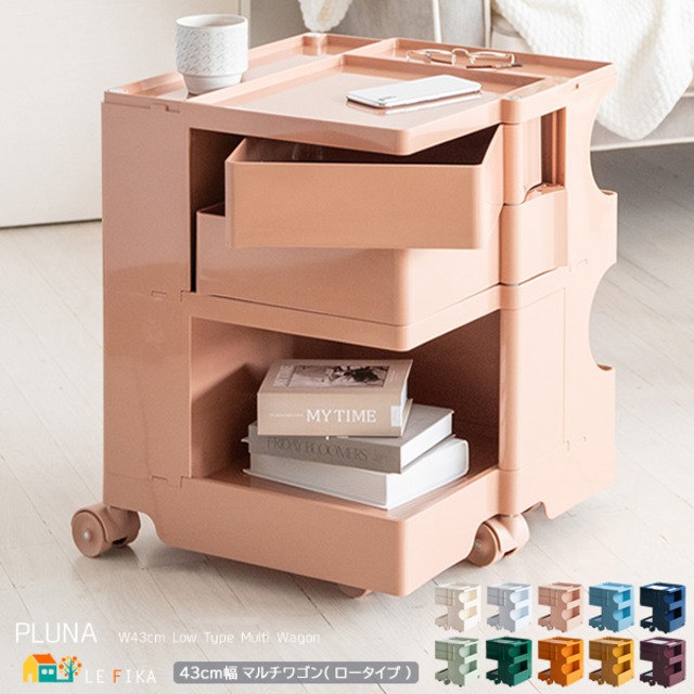 マルチワゴン ロータイプ 43cm幅 クリーム グリーン ライトグリーン ライトピンク ライトブルー ネイビー ワイン オレンジ ホワイト イエロー キャスター付きワゴン ローワゴン おすすめ おしゃれ モダン プッシュ式スライドトレー 収納ワゴン 幅43cm 奥行43cm 高さ52.5cm