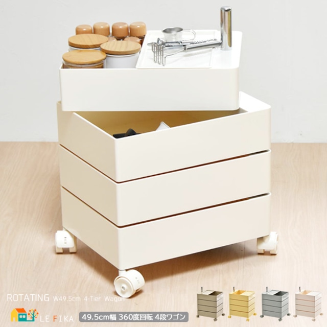 回転式ワゴン 4段タイプ 49.5cm幅 ライトブルー ライトブラウン アイボリー イエロー 四段ワゴン 360度回転式引き出し 収納ワゴン おすすめ おしゃれ キャスター付き サイドワゴン キッチンワゴン 軽量 コンパクト 回転スライド収納 幅49.5cm 奥行39.5cm 高さ60cm 収納棚