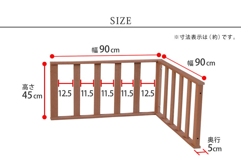 コーナーフェンス 単品 ライトブラウン ダークブラウン 茶色 人工木 ウッドデッキ専用フェンス 幅90cm 奥行5cm 高さ45cm おすすめ おしゃれ 北欧 デッキ用フェンス ウッドデッキ用コーナーフェンス フェンス単品 コーナー用フェンス ガーデンデッキ用フェンス 樹脂 DIY 縁側 | LE FIKA -レフィーカ-