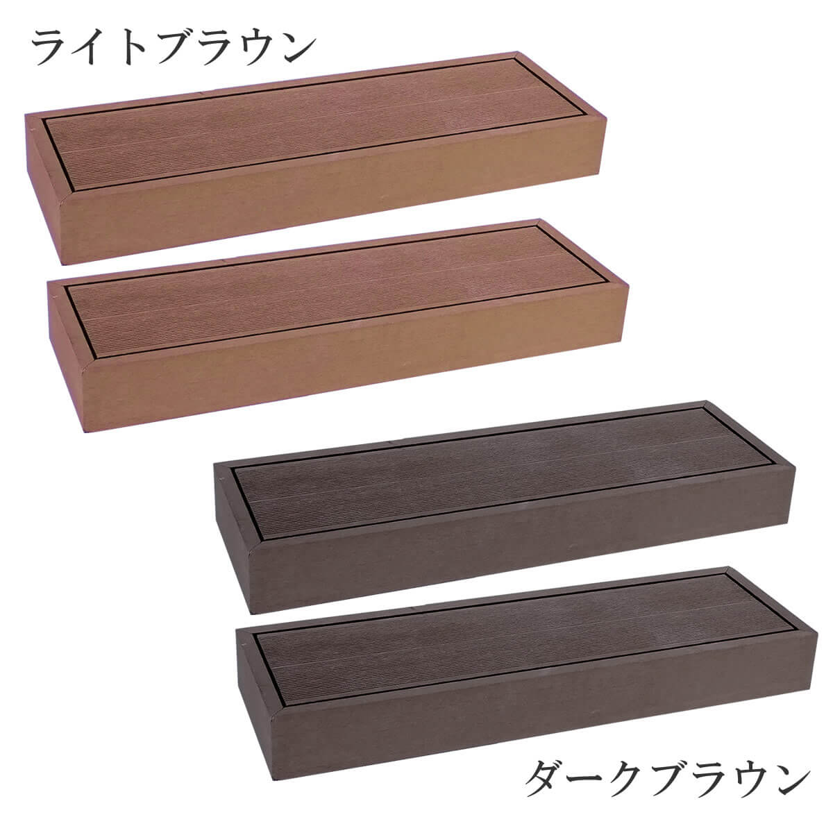 人工木 ステップ 2台セット ライトブラウン ダークブラウン 茶色 ウッドデッキ用ステップ単品 おすすめ 幅90cm 奥行28cm 高さ10.5cm おしゃれ 踏み台 昇降ステップ DIY 人工木ステップ 樹脂 人工木踏み台 庭 ベランダ バルコニー | LE FIKA -レフィーカ-