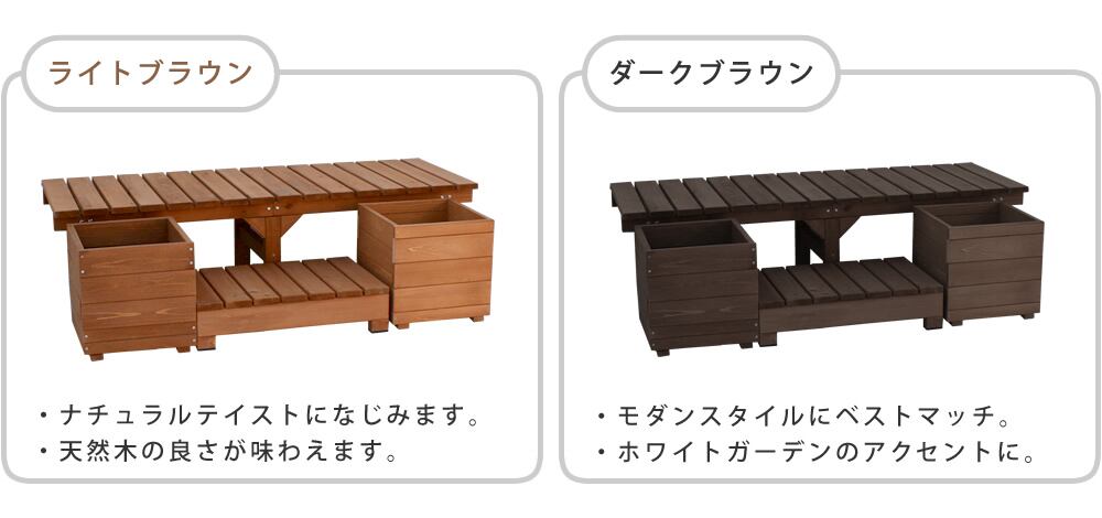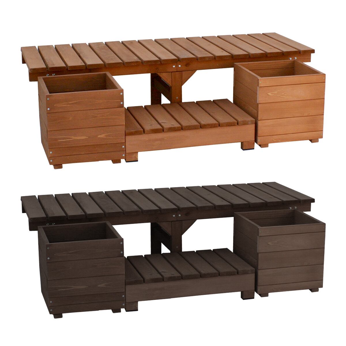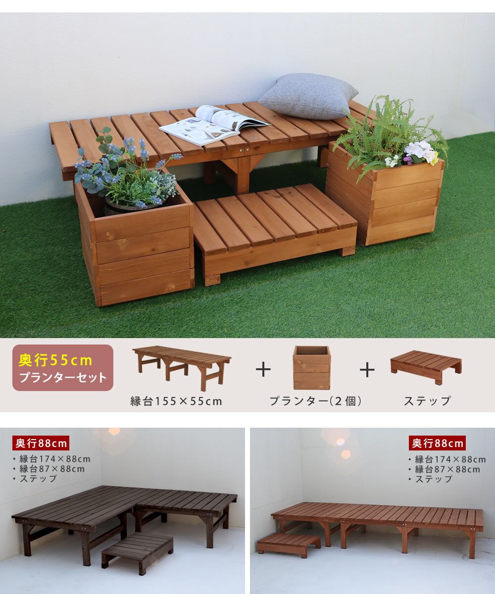 縁台 ベンチ デッキ縁台1台 プランター2個 ステップ1台 4点セット ライトブラウン ダークブラウン 茶色 庭 ガーデニングDIY ウッドベンチ ガーデンチェア 庭のベンチ ウッドデッキ おすすめ おしゃれ 北欧 木製ベンチ デッキ 縁台 縁台幅154.5cm 縁台奥行55cm 縁台高さ40cm
