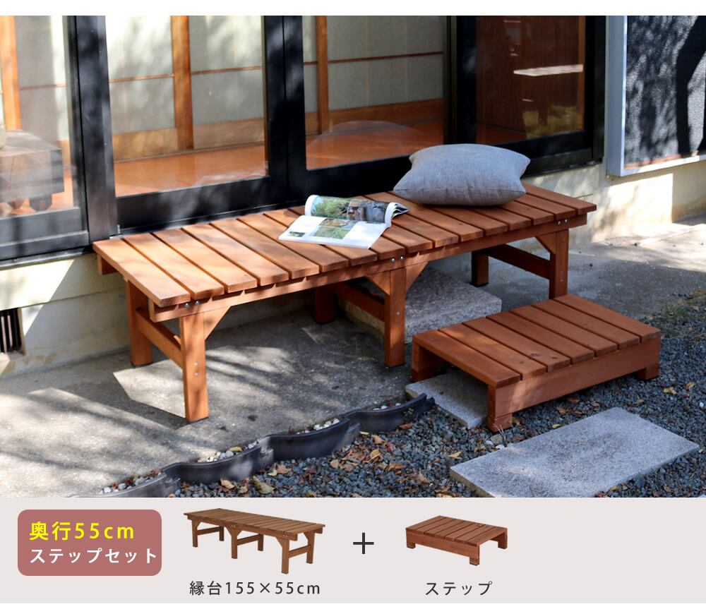 ・デッキ縁台:幅154.5cm、奥行55cm、高さ40cm