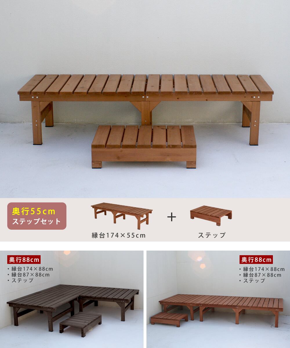 ・デッキ縁台:幅174cm、奥行55cm、高さ40cm