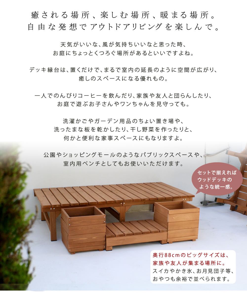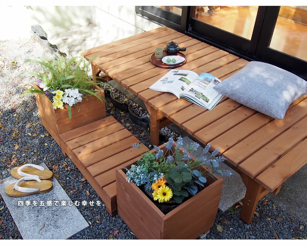 (※セット内容:デッキ縁台×1台、ステップ×1台、プランター×2個)