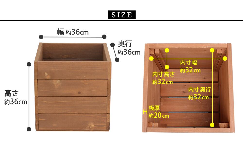 木製プランター 1個 単品 ライトブラウン ダークブラウン 茶色 ウッドプランター 天然木プランター ナチュラル 園芸 ガーデニング 庭 庭園 おすすめ おしゃれ 北欧 幅36cm 奥行36cm 高さ36cm 正方形 プランターカバー 木製プランターカバー 天然木