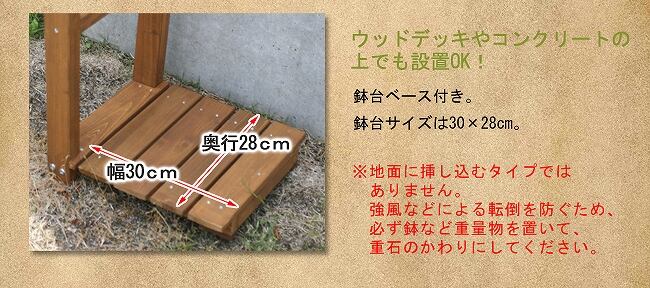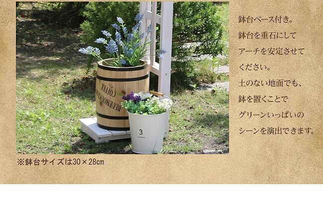 土のない地面の場合、鉢台ベース付きなので鉢台を重石にしてアーチを安定させてください。