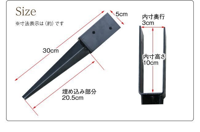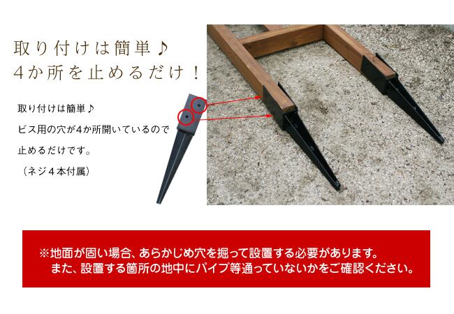 木製アーチをしっかりと地面に固定するために必要な土中埋め込みタイプの固定金具です。