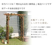 木製ガーデンアーチ専用の土中用埋め込み設置金具は、アーチの脚に1カ所〜4カ所取り付けることで、しっかりと地面に固定できます。