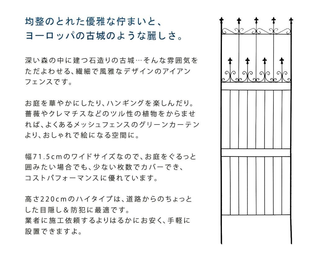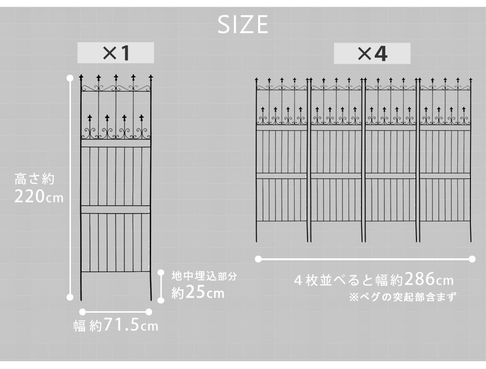 高さ220cmのハイタイプのアイアンガーデンフェンス4枚組セットです。