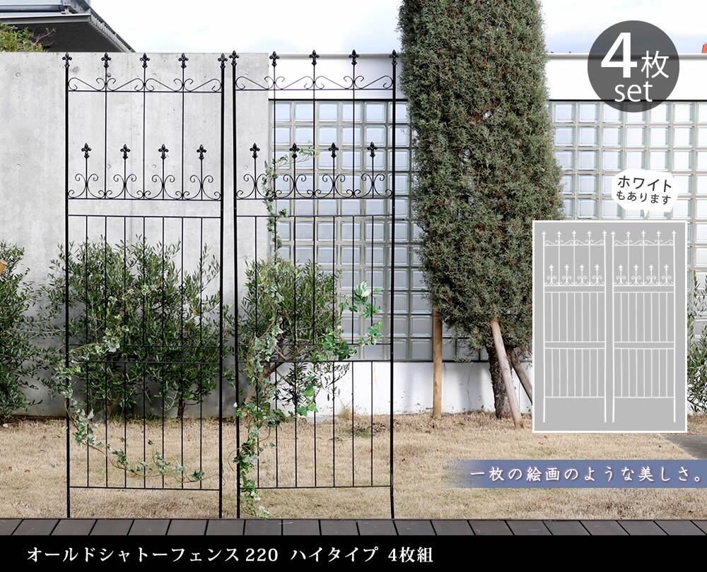 ガーデンフェンス 4枚セット 4枚組 アイアンフェンス 庭 ガーデニング 庭のフェンス おすすめ おしゃれ 北欧 オールドシャトー ブラック ホワイト 白 黒 バラ モッコウバラ クレマチス ツルハナナス トケイソウ アケビ ハツユキカズラ ジャスミン アイビー ヘデラ フウセンカズラ スイカズラ ハニーサックル ツルバラ テイカカズラ ハゴロモジャスミン カロライナジャスミン テッセン ニンドウ ロニセラ ツルアジサイ バラ 薔薇