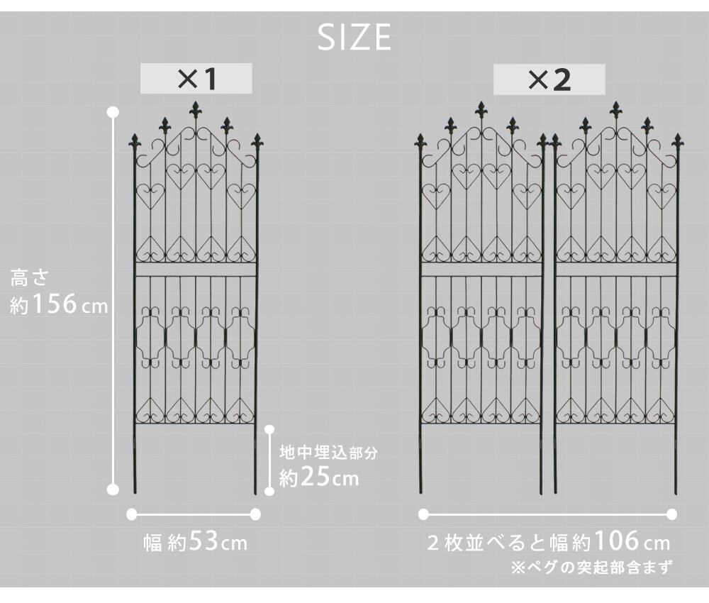 幅53cm、高さ156cmのロータイプのアイアンフェンス2枚組です。