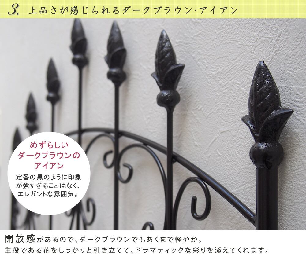 ガーデンフェンス アイアンフェンス 4枚セット ロータイプ ダークブラウン ホワイト 茶色 白 幅62cm 高さ156cm 厚さ2cm ローズフェンス バラフェンス バラ クレマチス 植物誘引 おすすめ おしゃれ 北欧 庭 ガーデニング 境界線 グリーンカーテン 目隠し 園芸 庭園 4枚組 | LE FIKA -レフィーカ-
