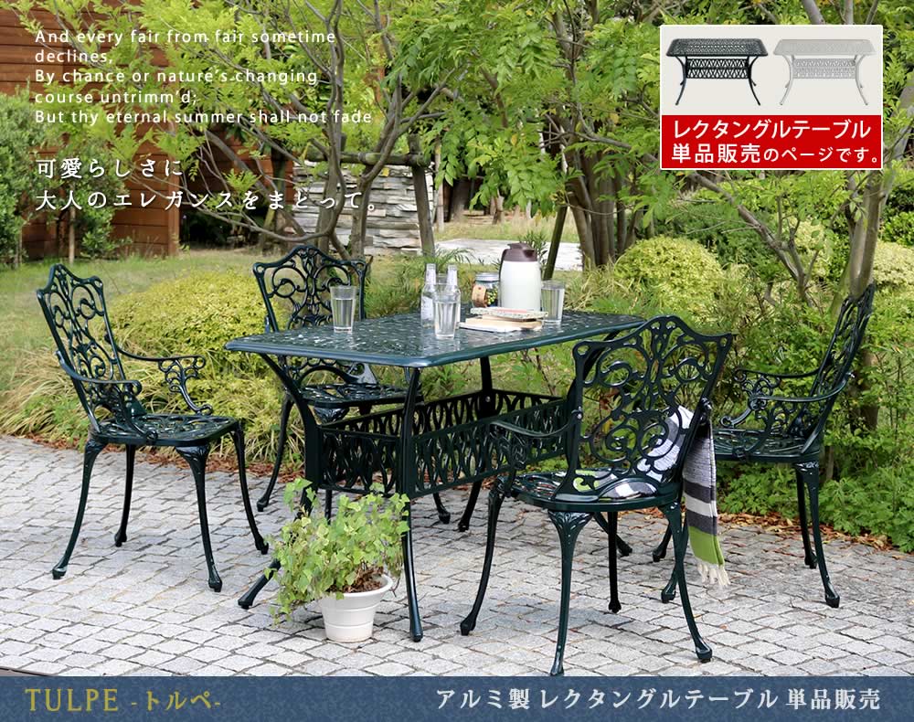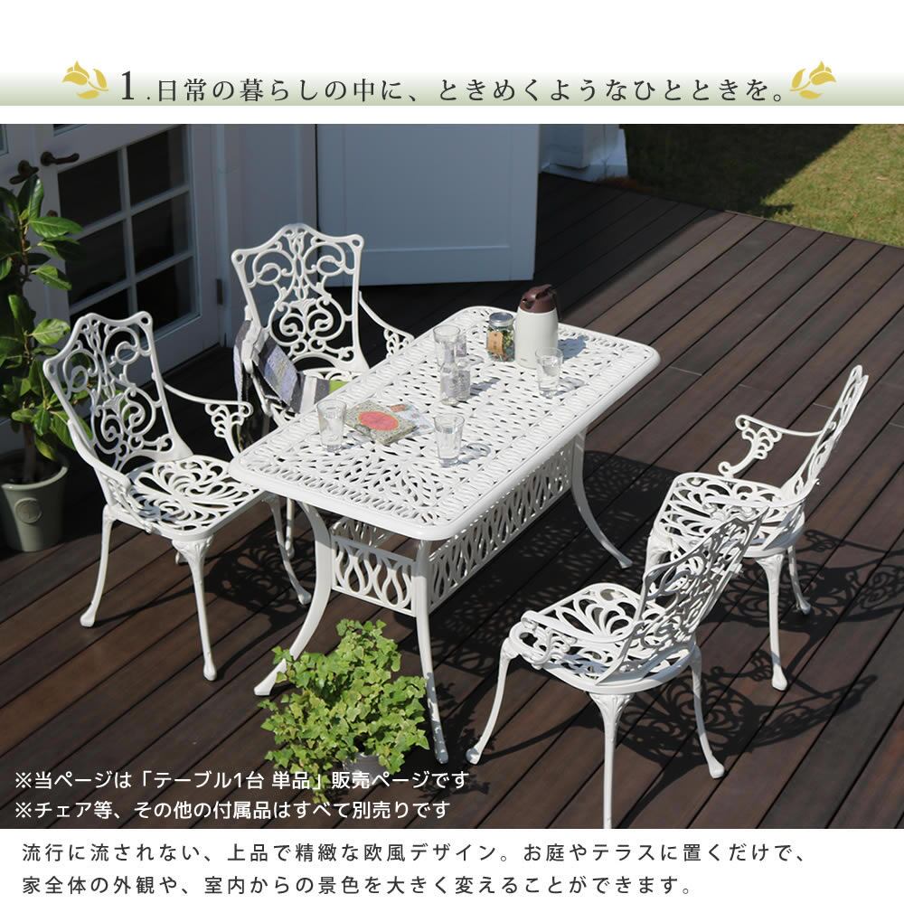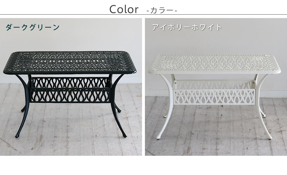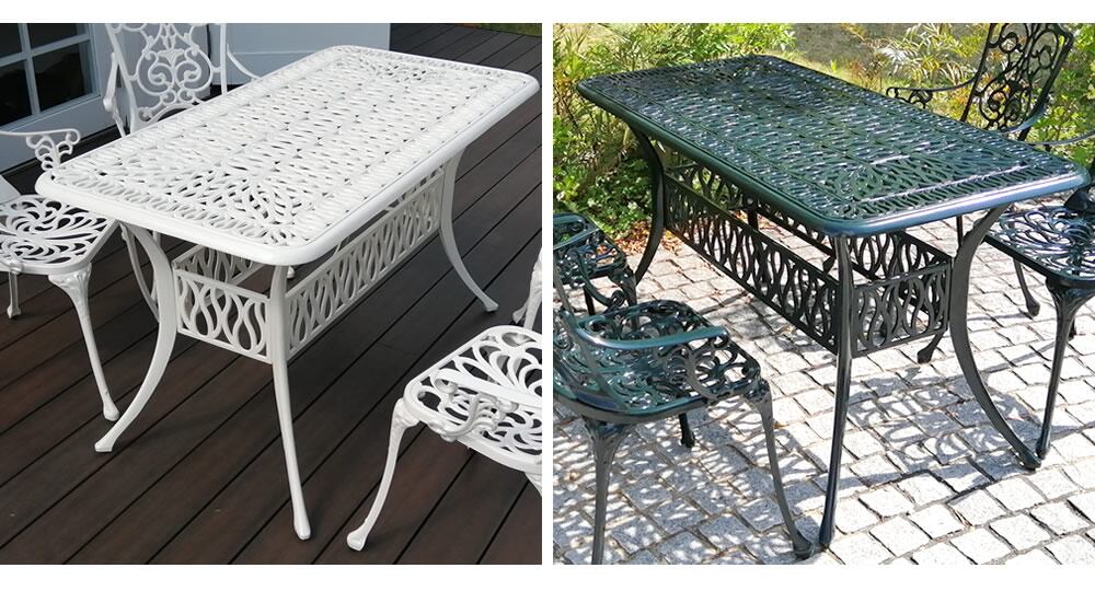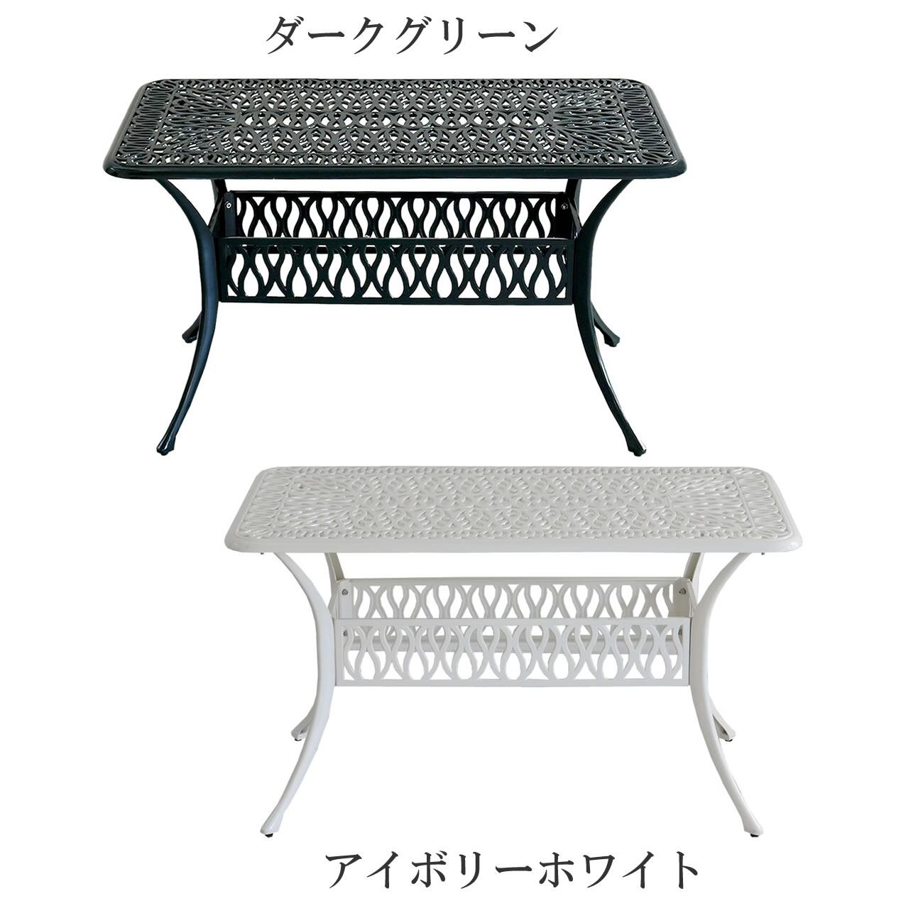 ガーデンテーブル 1台 単品 132cm幅 ダークグリーン アイボリーホワイト 緑 白 幅132cm 奥行69cm 高さ74cm おすすめ おしゃれ 北欧 ヨーロッパ調 アルミ製 机 庭のテーブル 4人用 ベランダ 庭 バルコニー テラス 庭の机 鋳物 ガーデニング 園芸 庭園 レクタングルテーブル