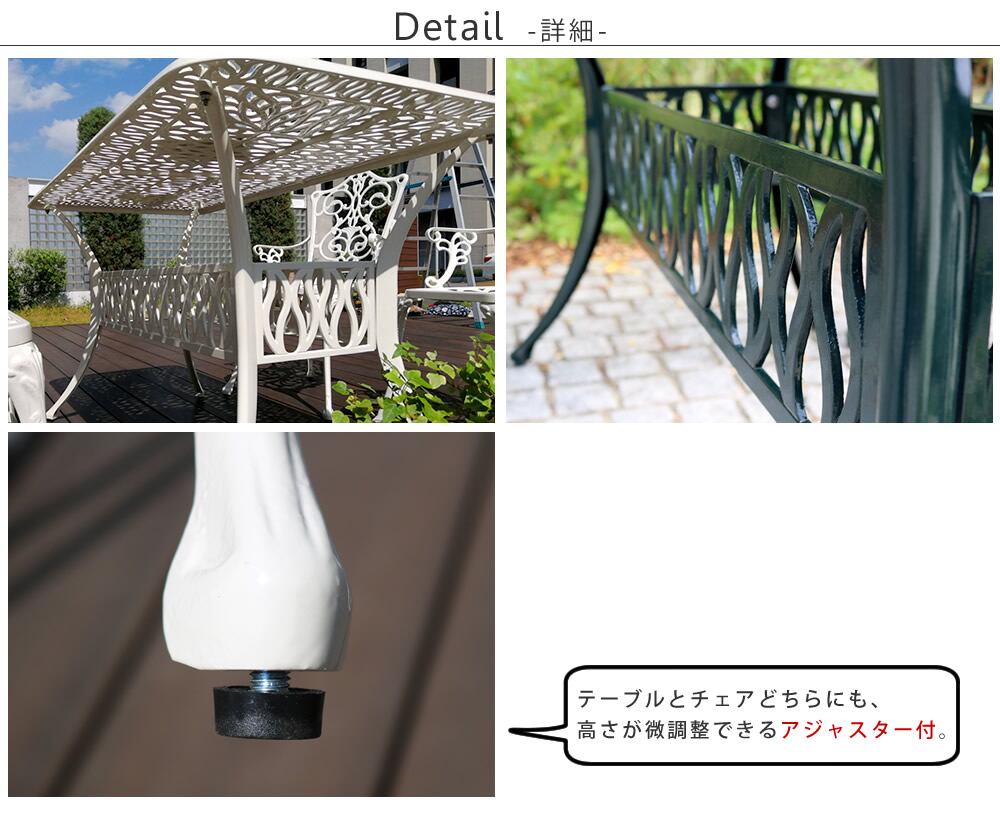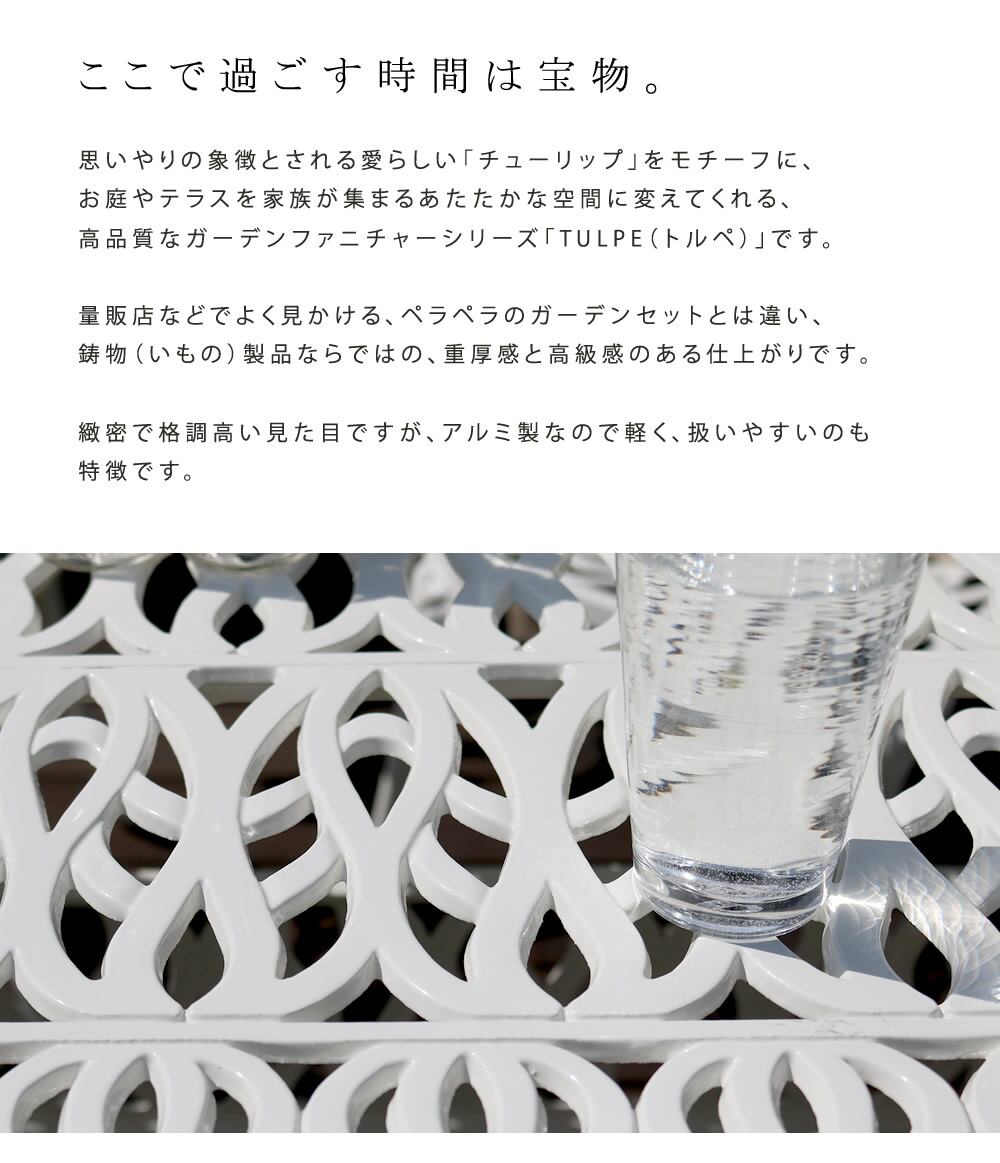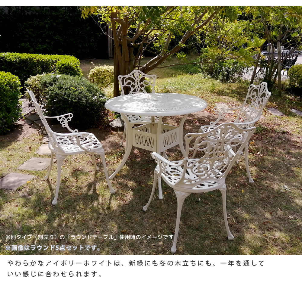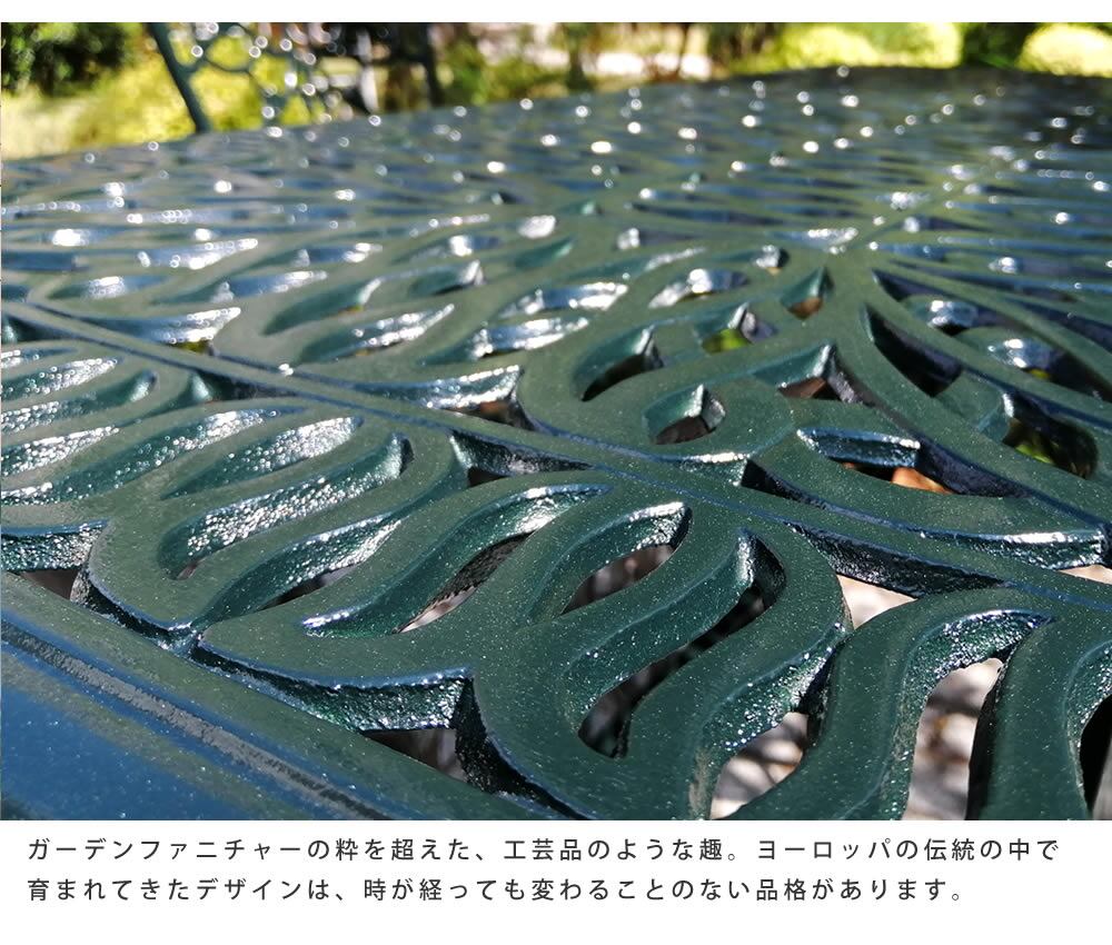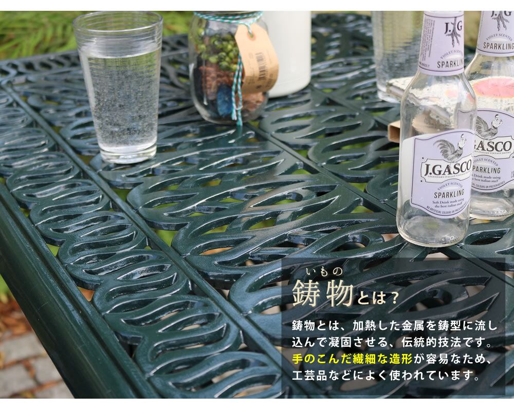 量販店などでよく見かける、ペラペラのガーデンセットとは違い鋳物製品ならではの、重厚感と高級感のある仕上がりです。