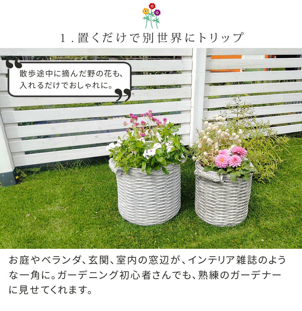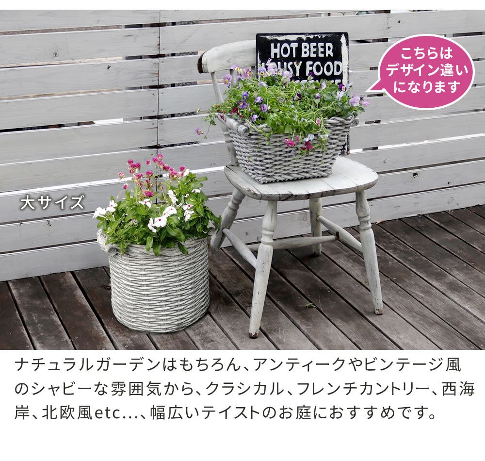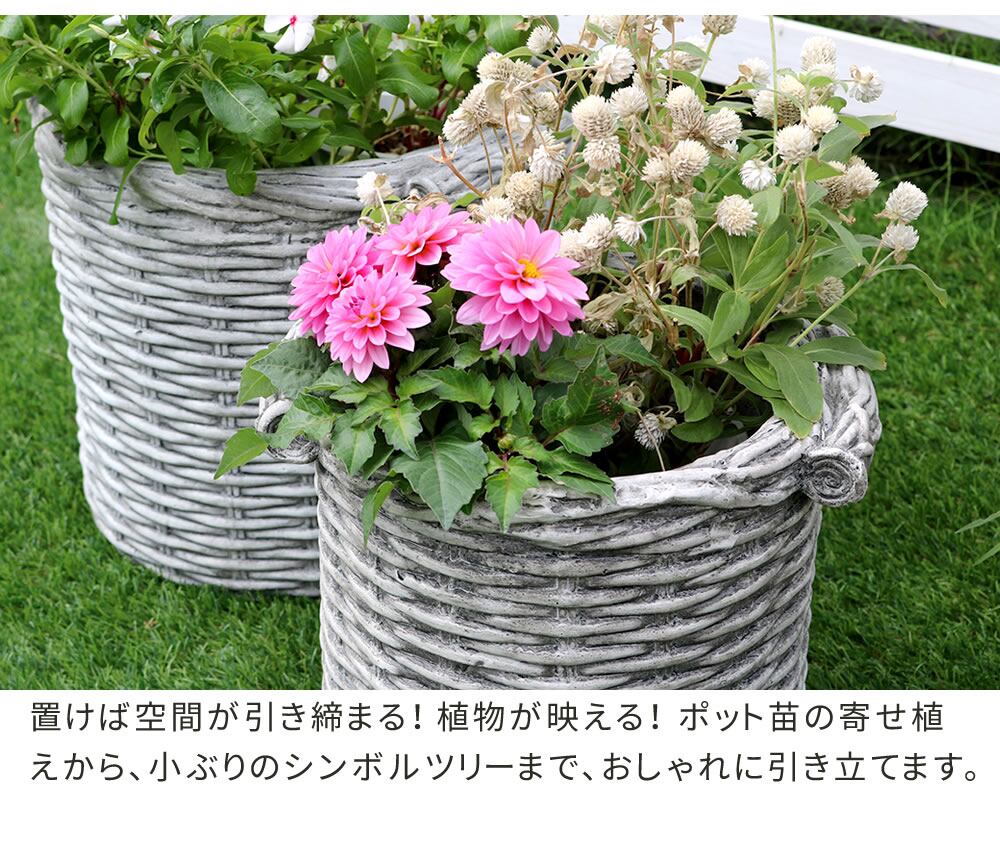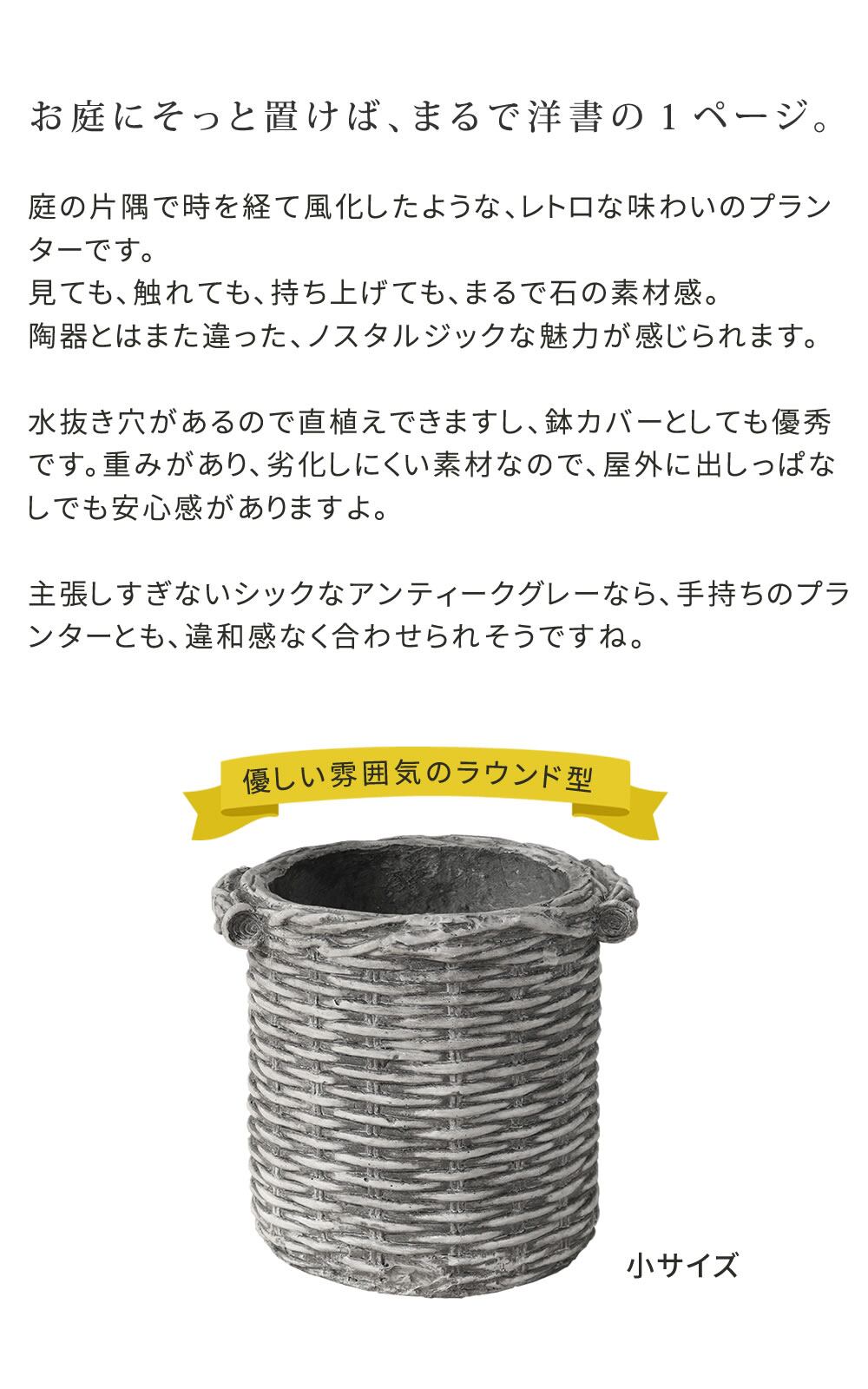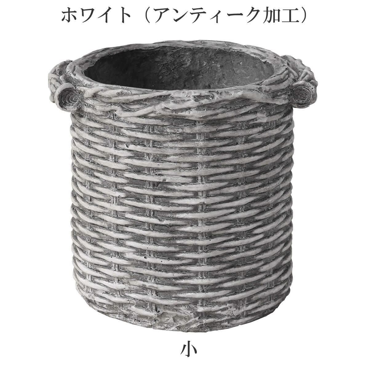 プランター ガーデンプランター 小サイズ 1個 単品 プランターカバー バスケット調 かご風 アンティーク調 アンティーク加工 おすすめ おしゃれ 北欧 ホワイト 白 シャビー シャビーシック ラウンド型 円型 鉢植え 植木鉢 ガーデニングプランター 庭 園芸 庭園 円形 レトロ 鉢カバー 水抜き穴 バスケット調プランター アンティーク加工 鉢植えカバー