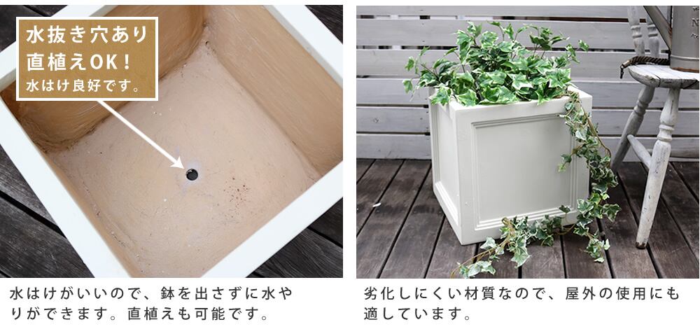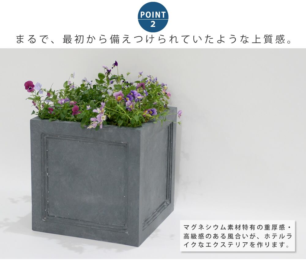 ガーデンプランター 鉢植え プランター 正方形 おすすめ おしゃれ 北欧 植木鉢 プランターカバー グレー ホワイト 白 灰色 庭 ガーデニング 花壇 玄関 ベランダ バルコニー 菜園 庭園 観葉植物 多肉植物 野菜 果物 トマト ミニトマト コマツナ シシトウ トウガラシ ワケギ アサツキ ナス ミズナ アリッサム ガウラ クレマチス スミレ チューリップ ハゴロモジャスミン