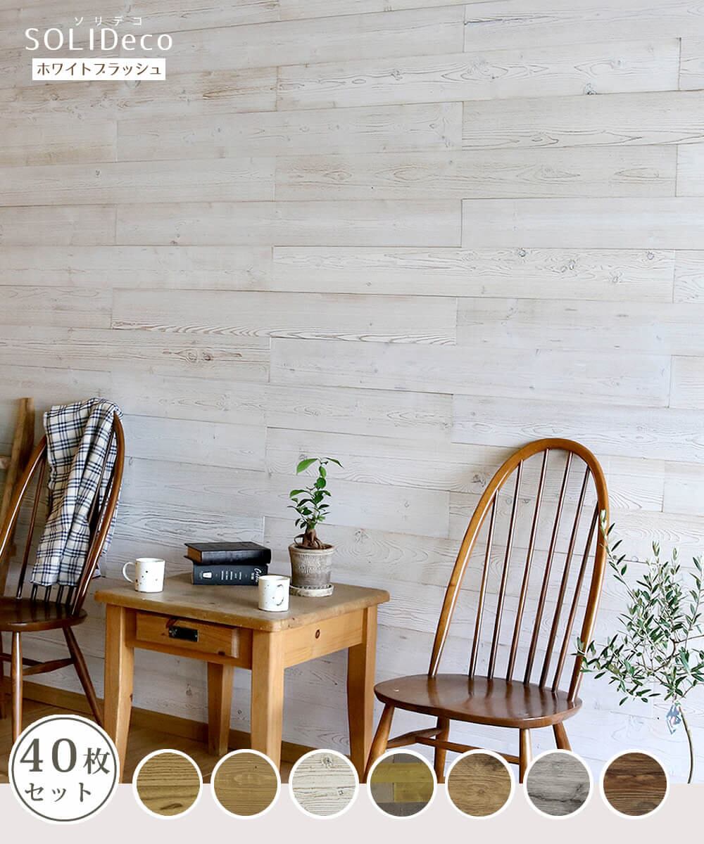 壁に貼れる天然木のウッドウォールパネル(カラー:ホワイトブラッシュ)、40枚組です。