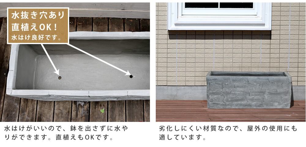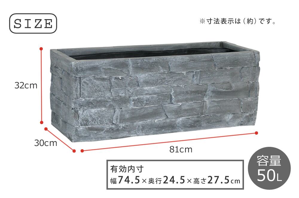 幅81cm、奥行30cmの長方形のレンガ調ガーデンプランターです。