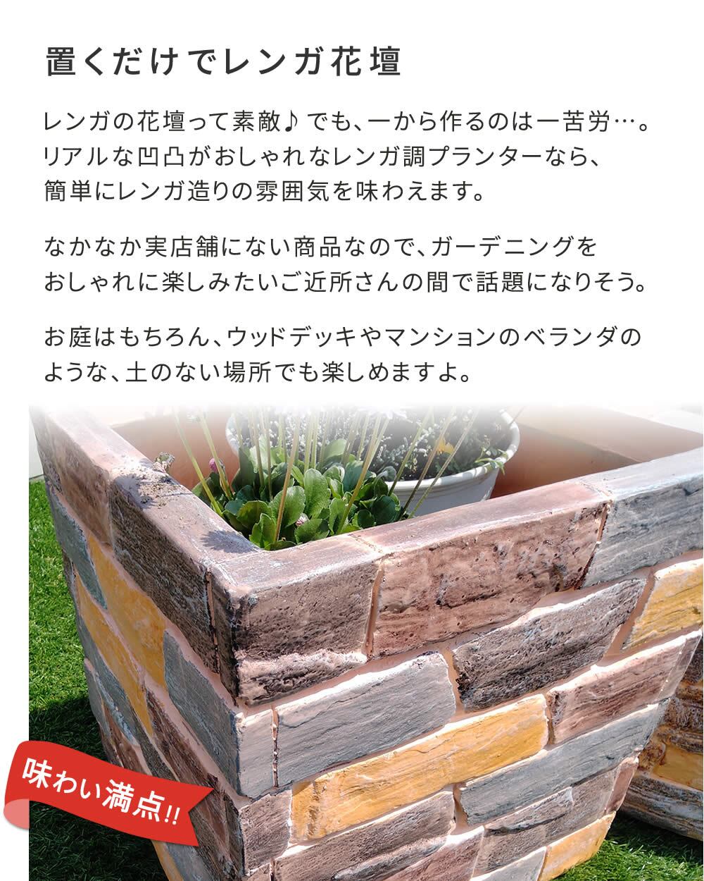 レンガ調 プランター マルチブラウン 茶色 植木鉢 40.5cm幅 鉢植え 水抜き穴付き 幅40.5cm 奥行40.5cm 高さ41cm 正方形 ガーデニング 庭 おすすめ おしゃれ 北欧 レンガ調プランター ガーデニング鉢 家庭菜園 園芸 庭園 ベランダ バルコニー エントランス 野菜 菜園 花壇