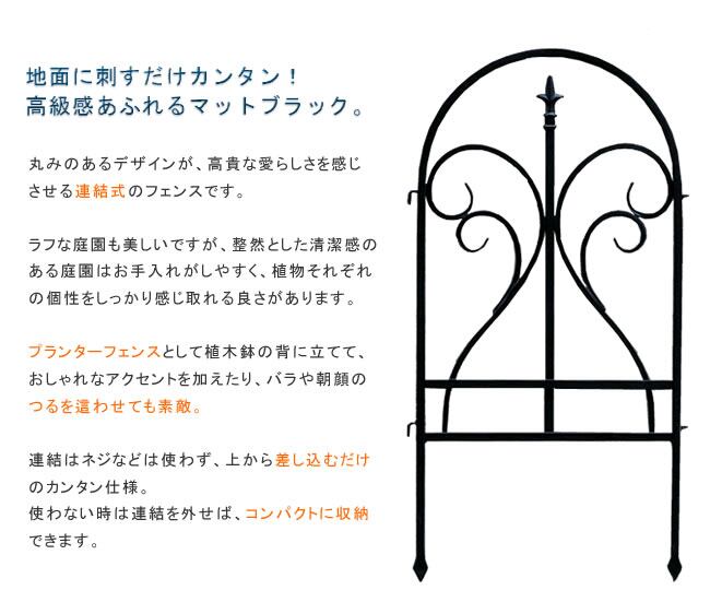 プランターフェンスとしても活躍してくれるアイアンフェンスは、地面に刺すだけの簡単設置仕様です。
