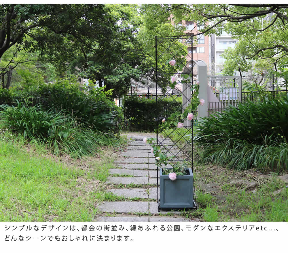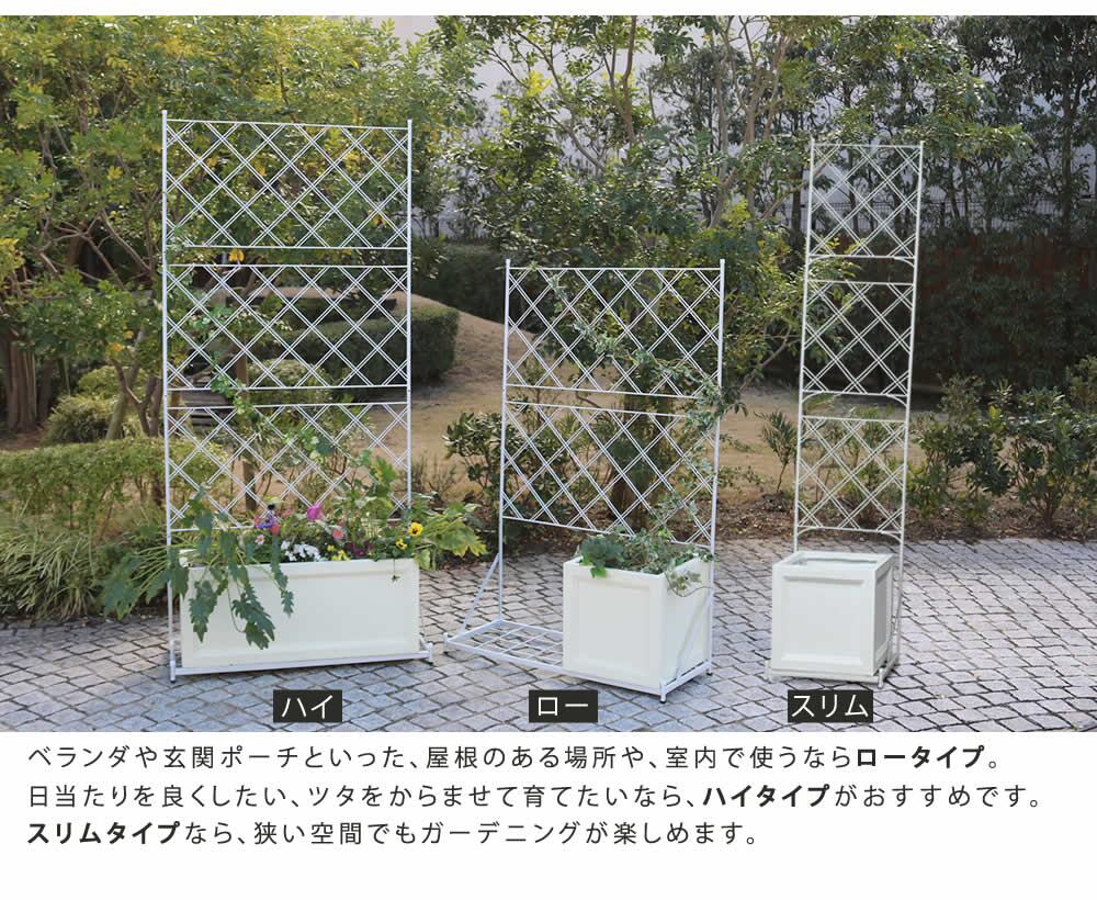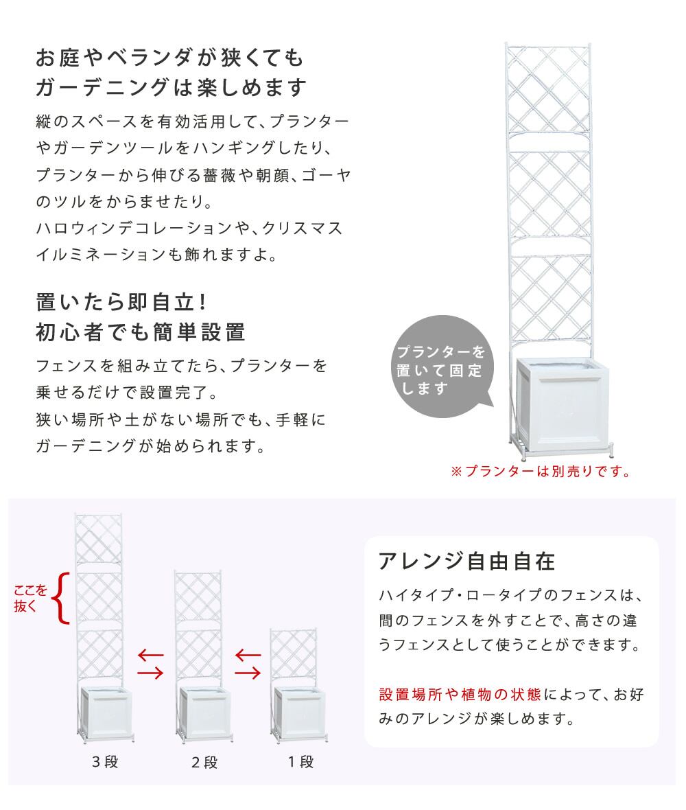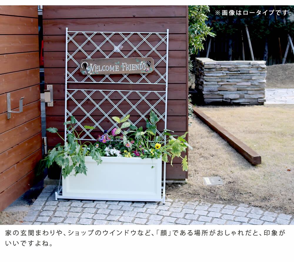 縦のスペースを有効活用できるプランター台付のスリムタイプのガーデンフェンスです。