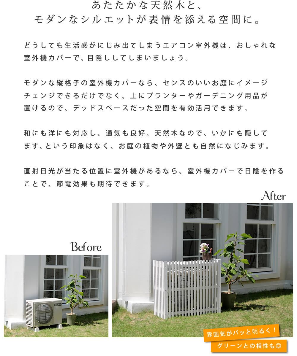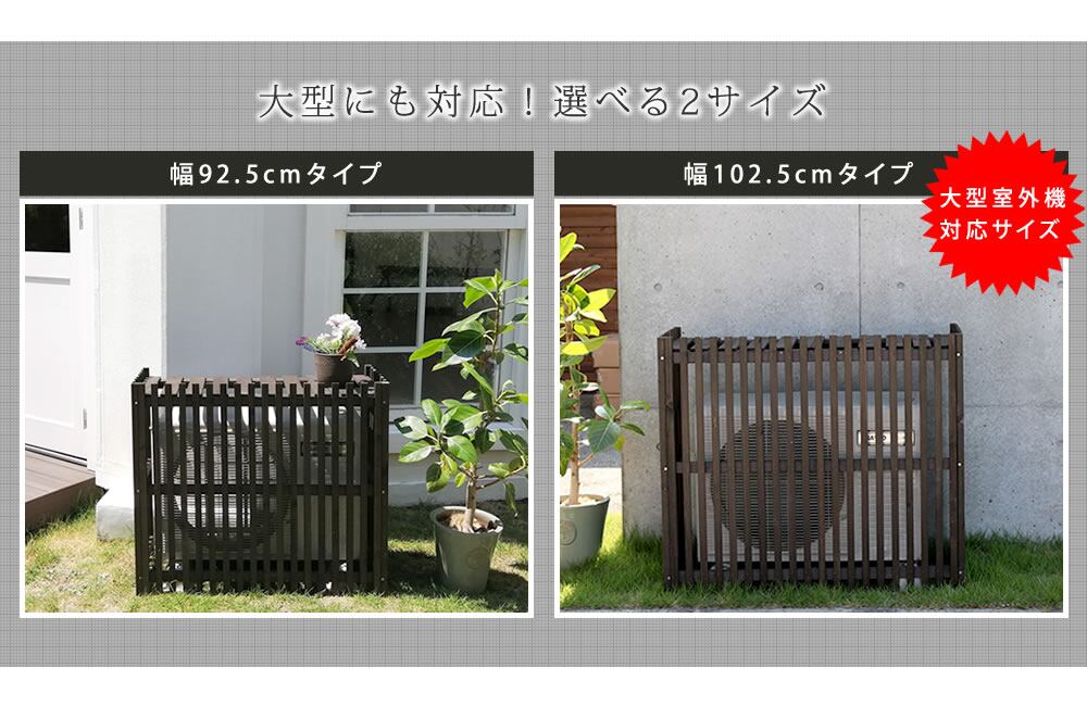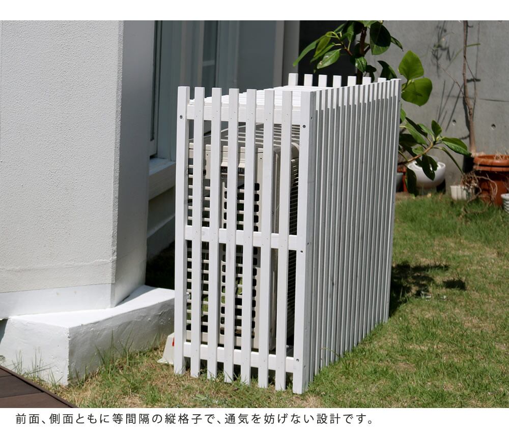 縦格子 ストライプ 室外機カバー エアコン室外機カバー 92.5cm幅 おすすめ おしゃれ 木製 天然木 ガーデニング 北欧 鉢植え台 プランター台 植木鉢台 鉢置き台 家庭菜園 省エネ デッドスペース活用 ダークブラウン ホワイト 茶色 白 木製室外機カバー ベランダ バルコニー