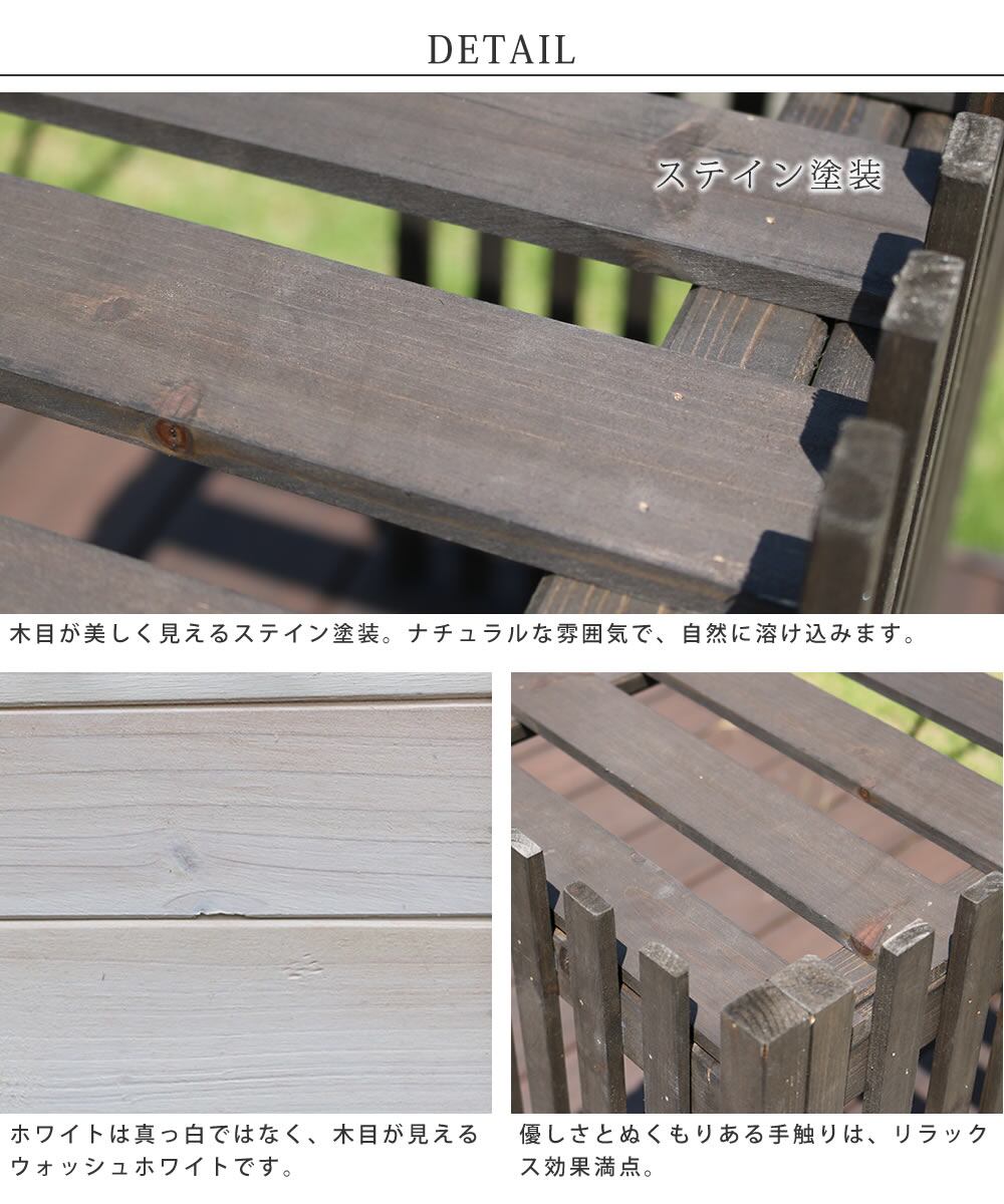 ・天然木を使用したガーデン・アウトドア商品には、天然木特有の節や、小さな傷、乾燥によるひび割れや反りなどがある場合がございますので、予めご了承下さいますようお願い申し上げます。