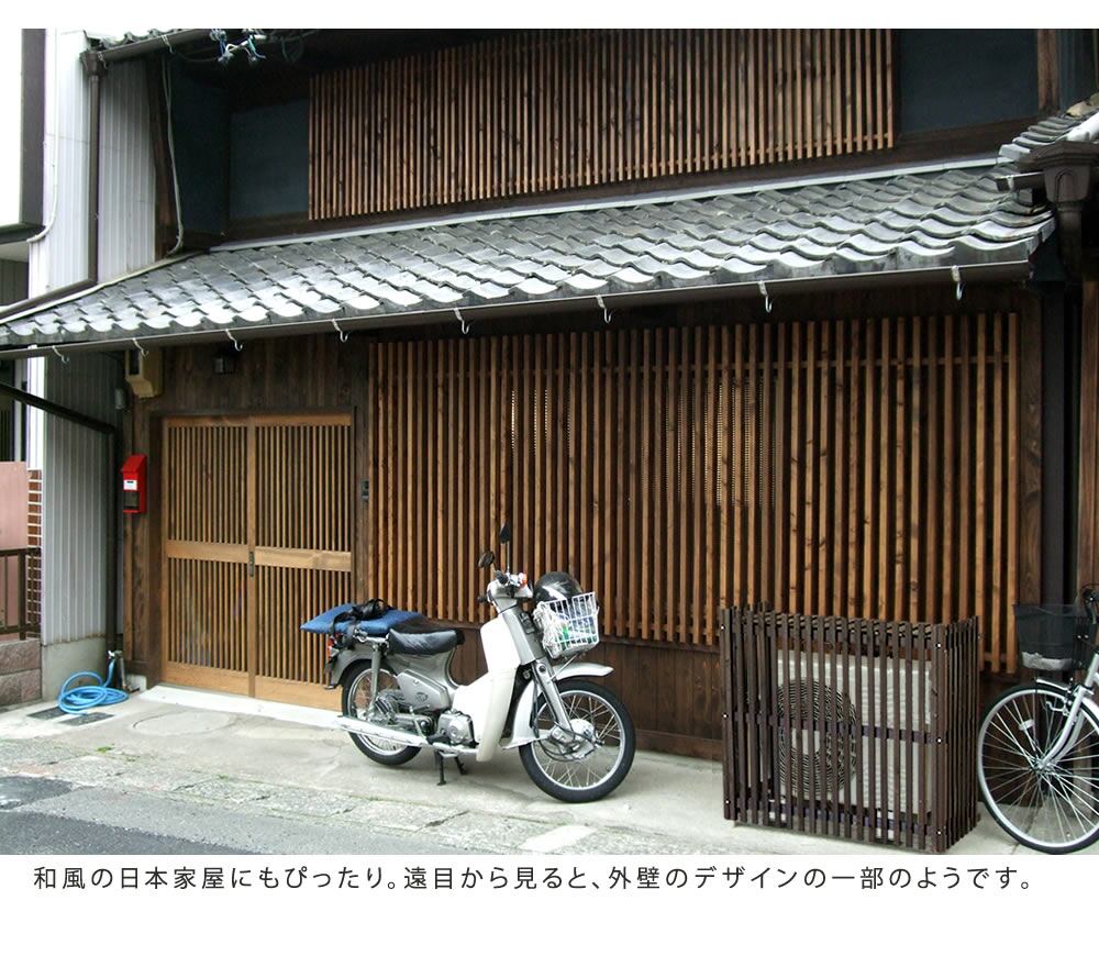 和にも洋にも対応し、通気も良好で、天然木なので、いかにも隠してます、という印象はなく、お庭の植物や外壁とも自然になじみます。