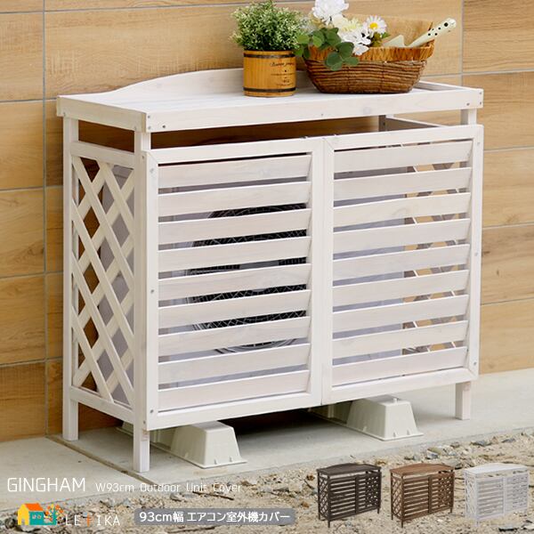 木製室外機カバー 93cm幅 ライトブラウン ダークブラウン ホワイト 逆ルーバー 室外機カバー エアコン室外機カバー おすすめ おしゃれ 北欧 モダン 目隠し 天然木使用 ベランダ バルコニー 庭 鉢植え台 フラワースタンド 植木鉢台 プランター台 幅93cm 奥行39cm 高さ83.5cm