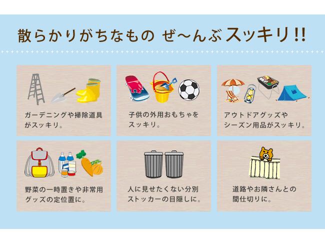 ガーデニング用品や、お掃除グッズなどをひとまとめにできるスリムタイプの三角屋根収納庫です。
