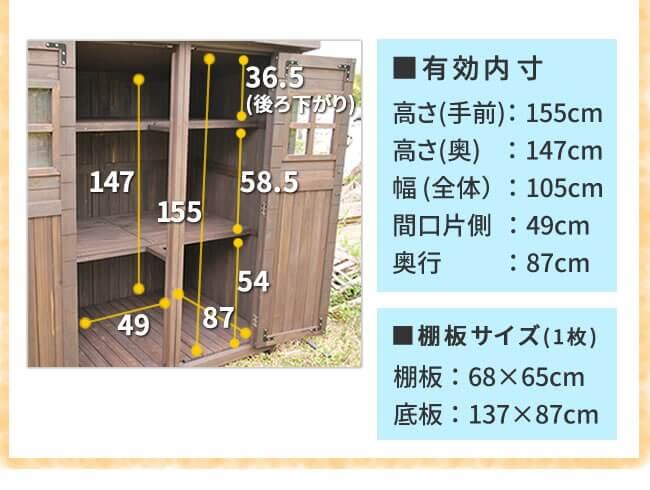 幅156cmの木製の大型ガーデン収納庫です。