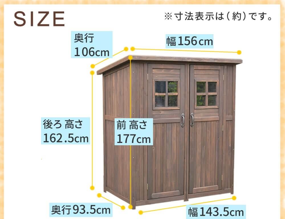 ・本体:幅156cm、奥行106cm、高さ(後ろ)162.5cm、高さ(前)177cm