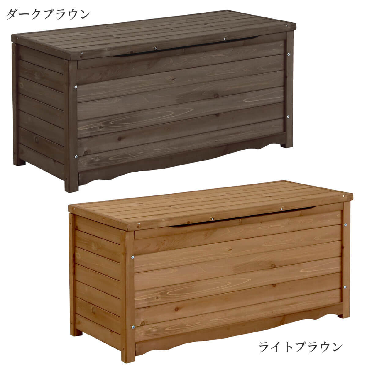 ボックスベンチ 収納付き 106cm幅 ライトブラウン ダークブラウン 茶色 ガーデンベンチ 庭の椅子 ベランダ バルコニー 庭 ガーデン収納 幅106cm 奥行43.5cm 高さ51cm おすすめ おしゃれ 北欧 収納ボックス 収納付きベンチ テラス 木製ベンチ ウッドベンチ 背もたれ無しベンチ