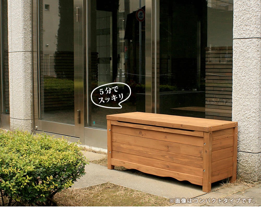 106cm幅の天然木製のガーデン収納ボックスベンチです。