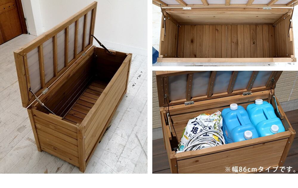 ポリタンクも収納できちゃう大容量サイズのボックスベンチが登場です。