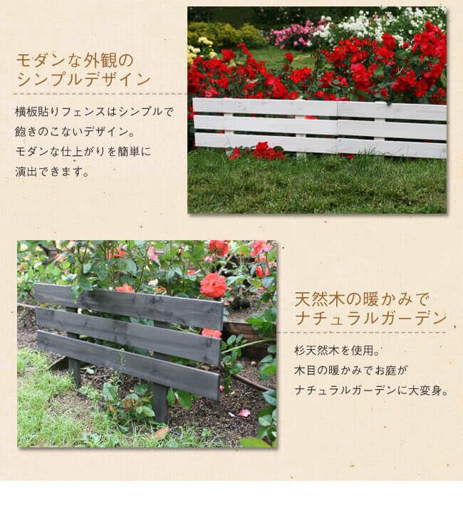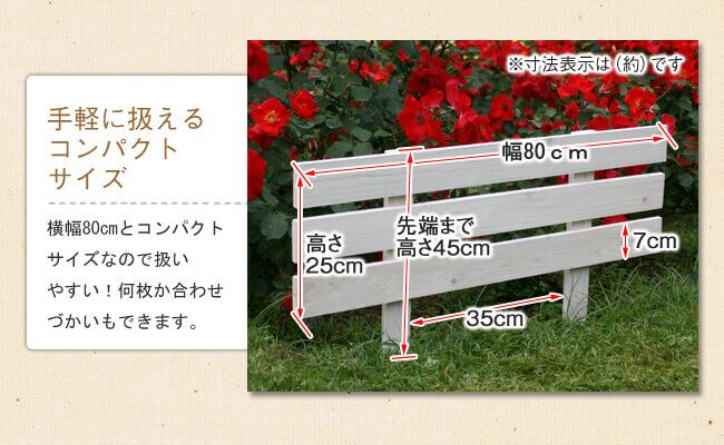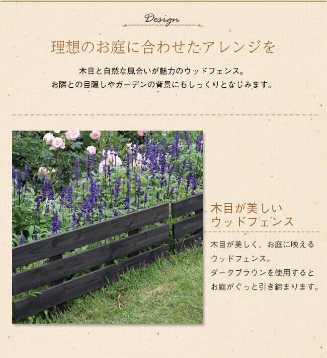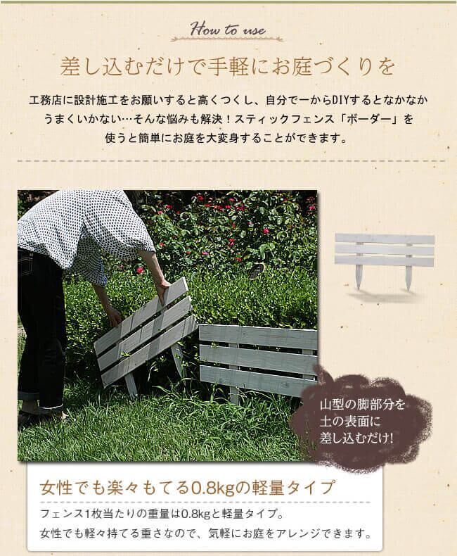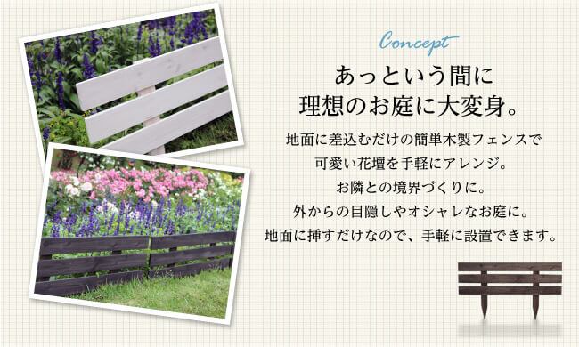 設計施工を工務店にお願いする必要もなく、地面に挿すだけなので、手軽に設置できる木製のガーデンフェンスです。