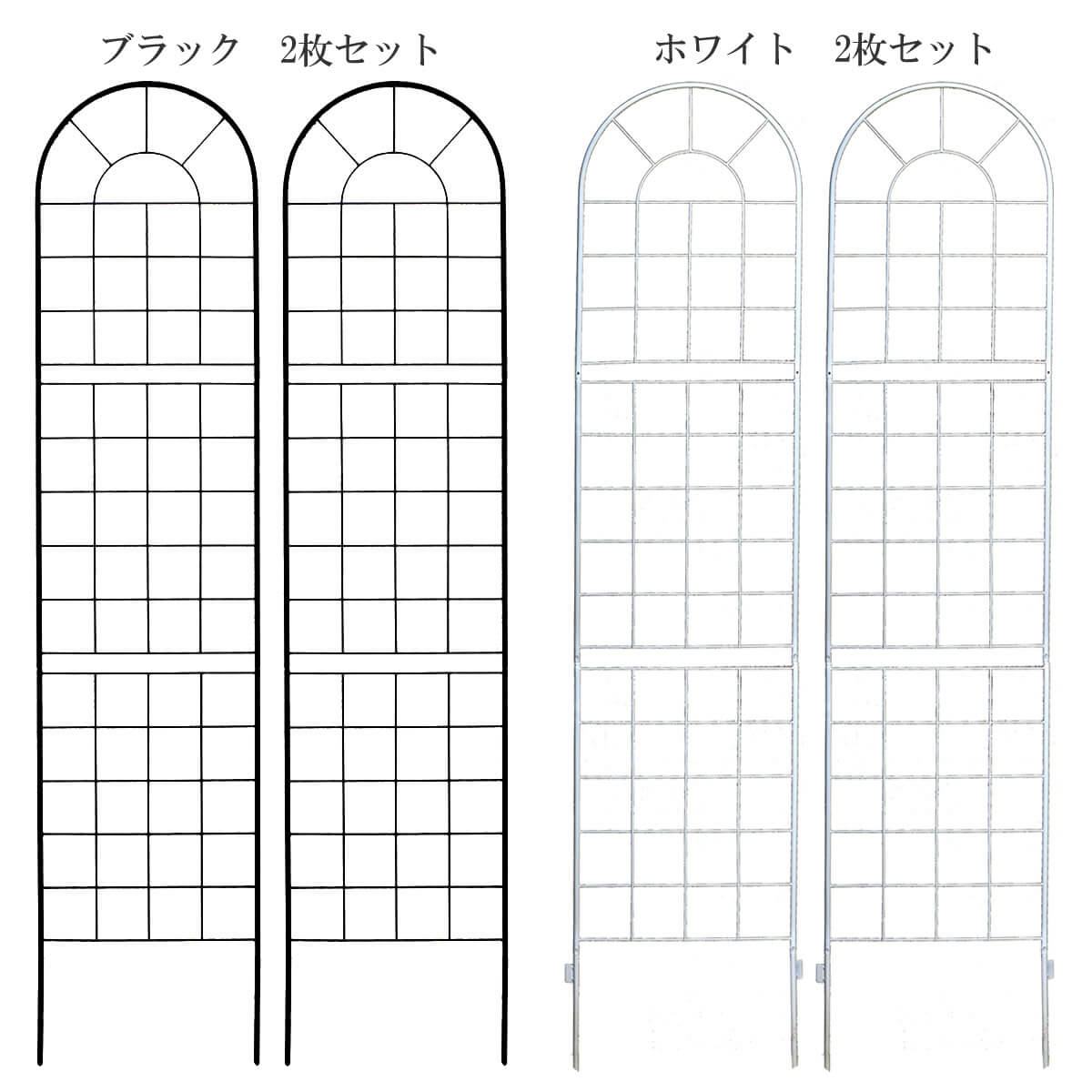 ガーデンフェンス 50cm幅 ハイタイプ 2枚セット ブラック ホワイト 黒 白 アイアンフェンス ローズフェンス バラフェンス 幅50cm 奥行1.3cm 高さ220cm おすすめ おしゃれ 北欧 薔薇 境界線 目隠し 庭 春 夏 秋 冬 ガーデニング 園芸 庭園 花壇 庭のフェンス 植物誘引 2枚組