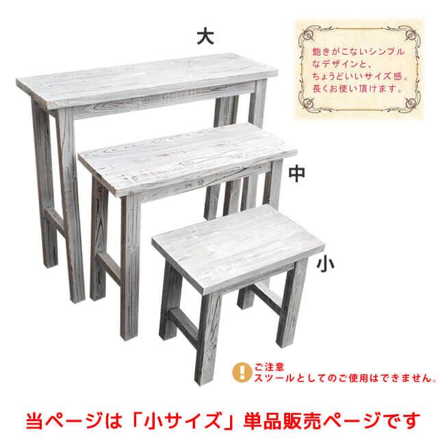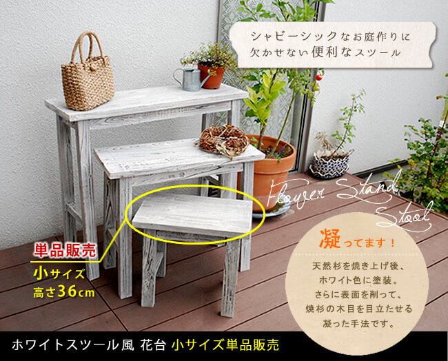 木目の美しさが印象的な、自然の素材感を最大限に味わえるホワイトスツール風の花台(小サイズ)です。