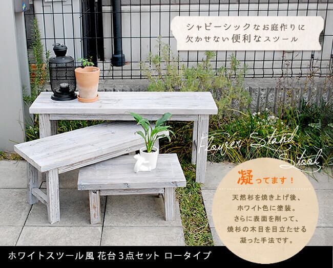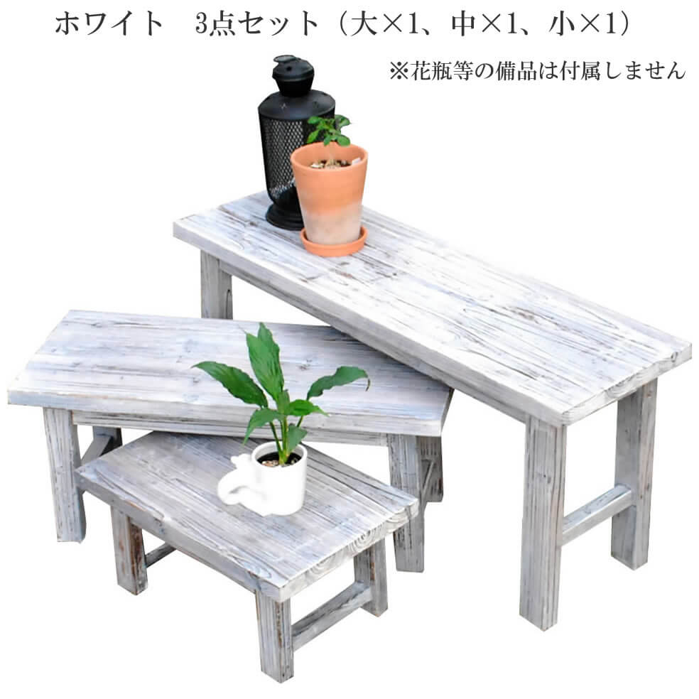 木製 花台 フラワースタンド フラワーラック 3点セット 3点組 植木鉢台 鉢植え台 プランター台 花置台 おすすめ おしゃれ ホワイト 白 小サイズ ロータイプ ウッドスタンド ウッドラック ロータイプ 植木鉢ラック 鉢植えラック プランターラック