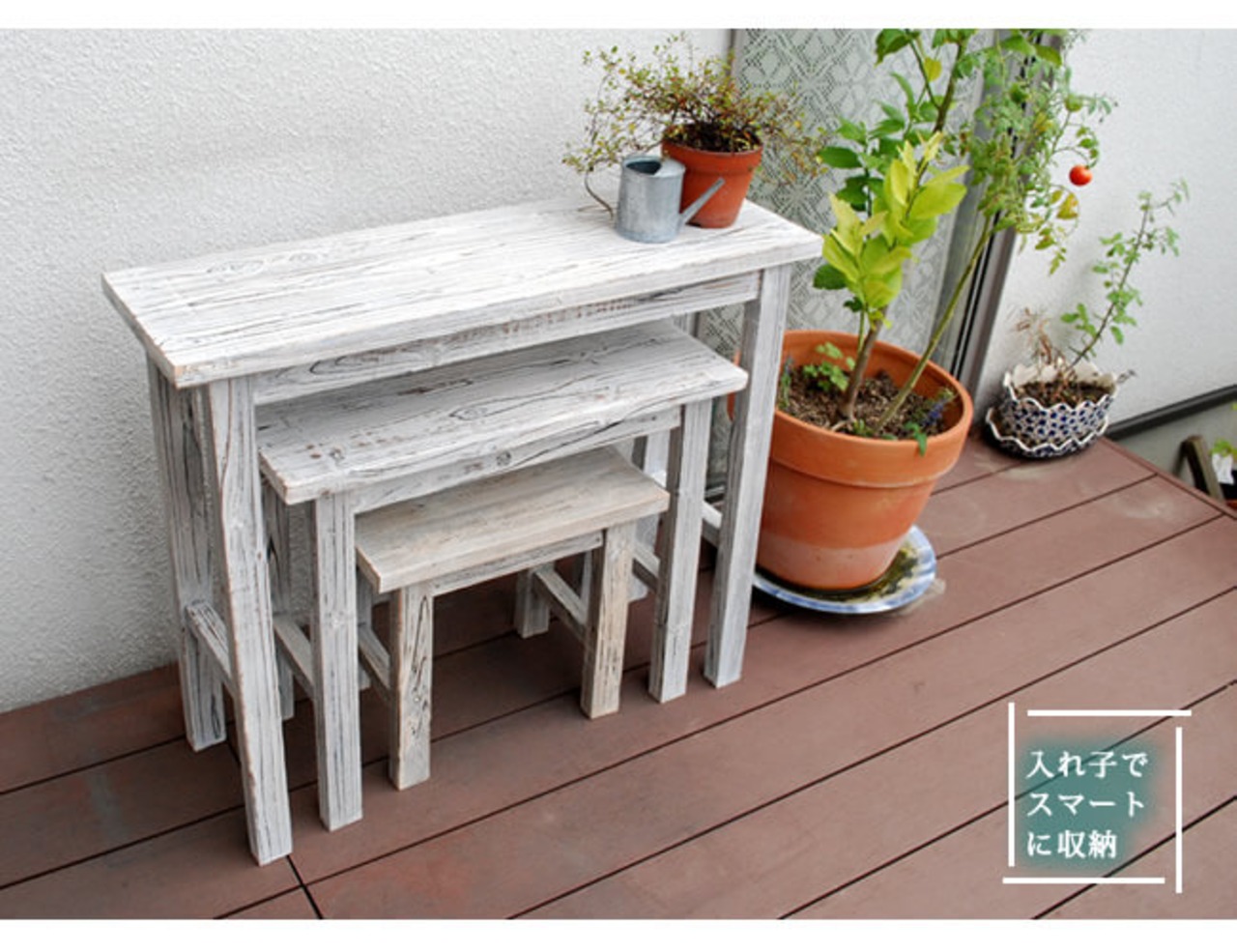 ・天然木を使用したガーデン・アウトドア商品には、天然木特有の節や、小さな傷、乾燥によるひび割れや反りなどがある場合がございますので、予めご了承くださいませ。
