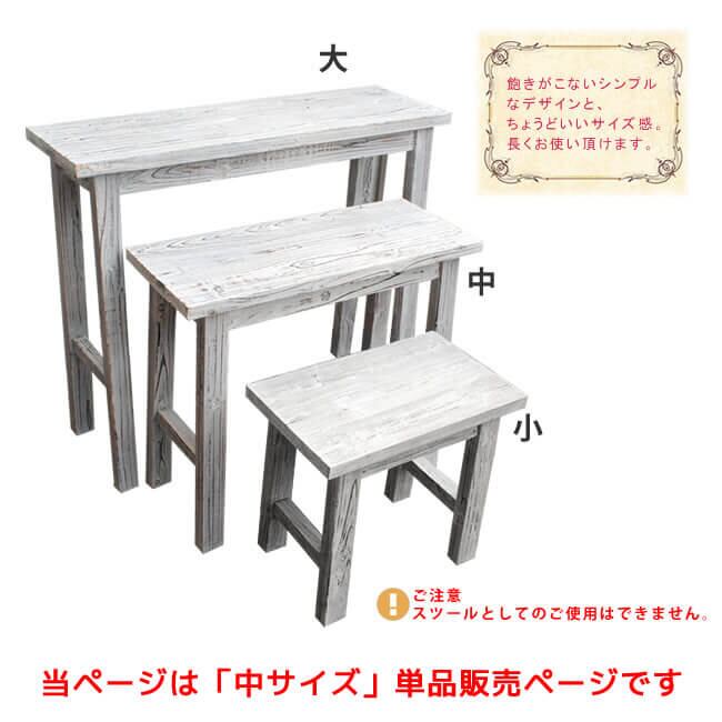 木目の美しさが印象的な、自然の素材感を最大限に味わえるホワイトスツール風の花台(中サイズ)です。