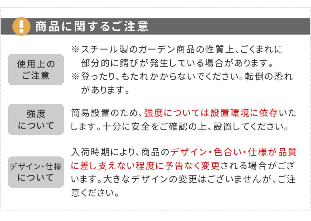 ・簡易設置の為、強度は設置環境に依存します。