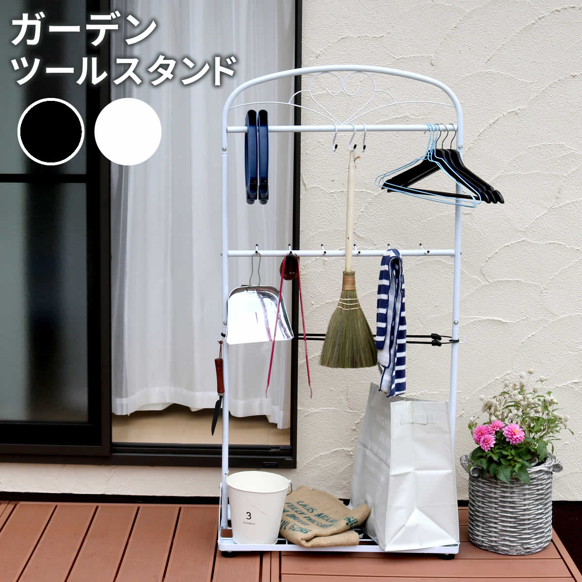 ガーデン収納スタンド ツールスタンド 75cm幅 ブラック ホワイト 黒 白 ガーデンスタンド ガーデン収納 幅75cm 奥行35cm 高さ146.5cm ラック エクステリアラック おすすめ おしゃれ 北欧 スリム コンパクト 春 夏 秋 冬 ガーデニング用品収納 庭用品スタンド ガーデン収納