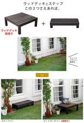 何台でも組み合わせて、お気に入りのカタチに設置できるので、縁台として、ウッドデッキとして、また飾り棚としてもお楽しみいただけます。