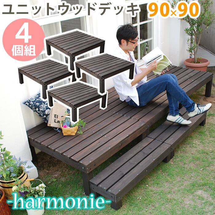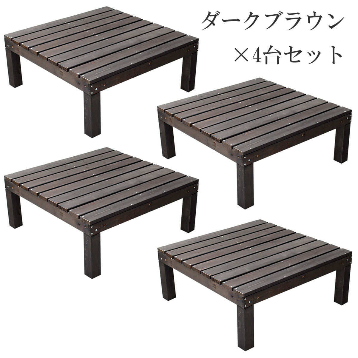 木製デッキ 木製縁台 ウッドデッキ 4個組 4個セット 4台セット 正方形 ユニットタイプ デッキ縁台 木製縁台 おすすめ ダークブラウン おしゃれ ユニットデッキ ユニット ユニットウッドデッキ 木製 天然木 茶色 庭 縁側 軒下 ベランダ テラス バルコニー 縁台 縁台デッキ